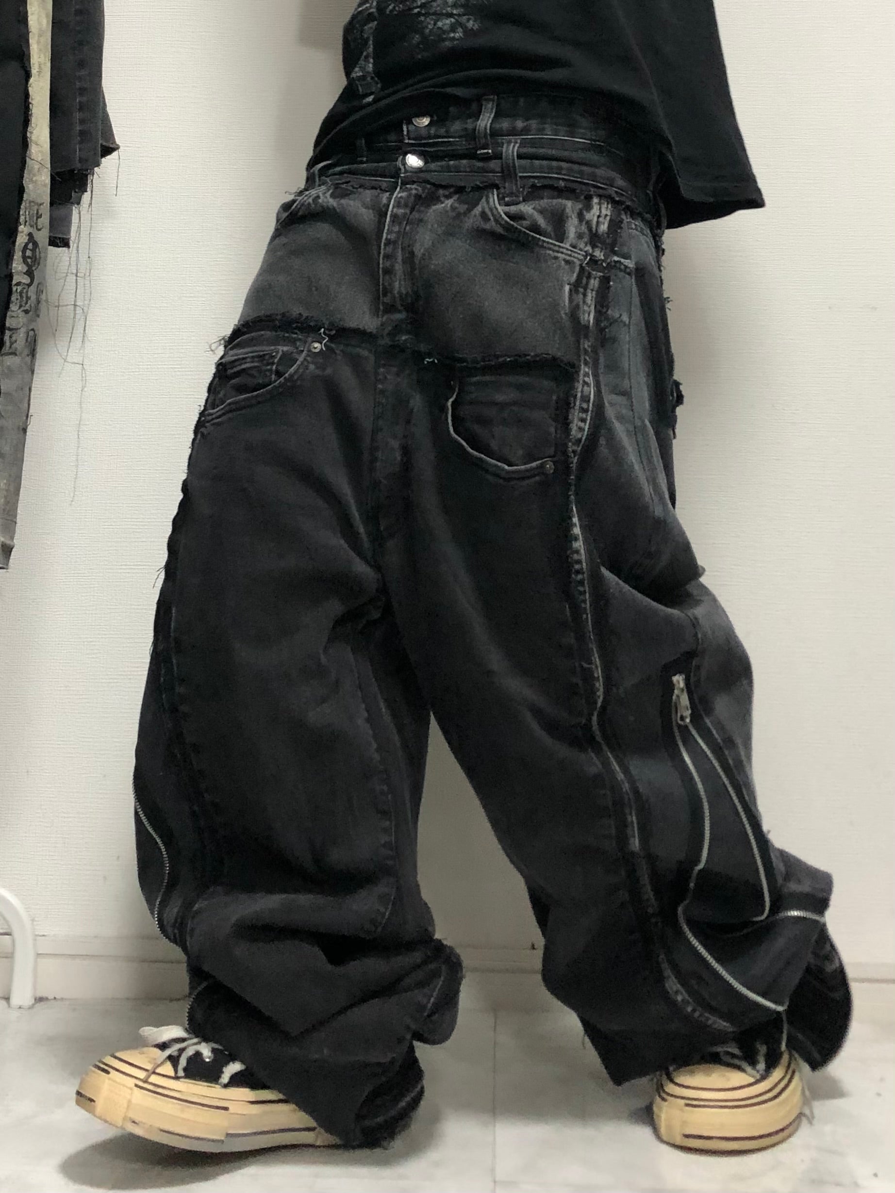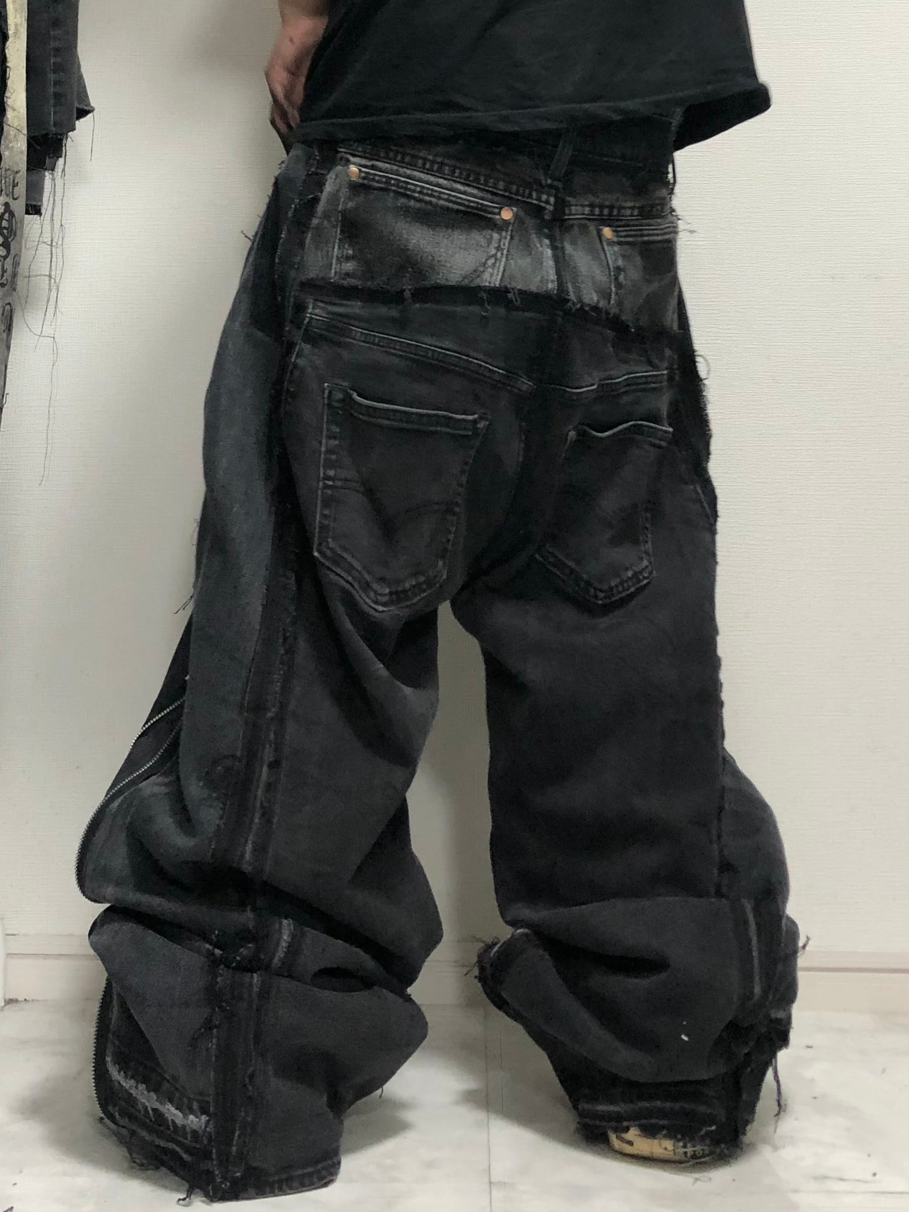 double posting black denim pants